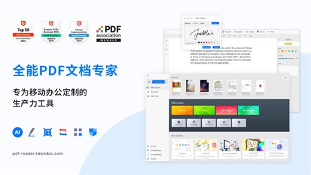 KDAN PDF Reader 堪比 Acrobat Adobe PDF 的最佳替代方案。整合AI技术,KDAN PDF Reader 是适用 Windows 10、Android、iPhone、iPad、Mac装置的全能PDF文件编辑专家,满足您各种PDF文件编辑与阅读的需求。成为PDF效率专家- 使用KDAN PDF Reader 进行PDF注释、编辑、合并、转档、加密、扫描和签署等多种档案编辑需求,即使您在学校、办公室、在家远距工作或移动中,依旧能维持高效的生产力。透过KDAN PDF Reader,任何PDF档案在您手中都能轻易处理,绝对是您最聪明的生产力工具选择。