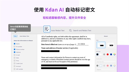 **全新AI功能上线! ** • 自动标记密文(Beta):保护您的文件安全。由AI技术自动侦测并遮蔽文件里的敏感内容,能够帮助教育、法律、财务、政府机构、卫生医疗等会经手大量机密文件的单位。