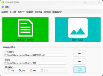 主要功能: 1,合并PDF文件 2,拆分PDF文件 3,转换PDF文件(文本转PDF、图片转PDF、PDF转图片) 4,压缩PDF文件 5,移除PDF页面(选择页面删除) 6,PDF水印(图片水印) 7,批量XPS转换PDF文件