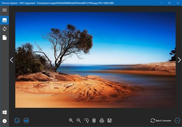 Picture Opener is a cool image viewer and converter. It supports more than 170 formats of image. Printing, Saving As and Batch-Converting need to purchase the add-on($2.99). And over 157 video formats are supported. It has three features: 1.Open single image. 2.Open folder to preview the images in a gallery. 3.Batch convert images to a format as you want. Such as jpg, jpeg.(This feature will be opened in the next version )
