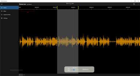 This application will allow you to select a fragment from a song, change pitch and speed and play it in loop. You can then play along and learn how to play more difficult parts in a more easy way. Changing the pitch and speed will require you to optionally buy a Pro add on. In addition you can also boost the right instruments using 4 band equalizer and select left or right channel to play separately. The Pro version will also allow you to save the fragments and thus quickly move from one part of a song to another. You can try the pro features for free for 14 days.