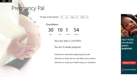 Pregnancy Pal helps you keep track of what's happening week to week with your baby. Along with the countdown, there are details of your baby's development. If there are any features you would like to see included then let me know at gimbal@live.co.uk
