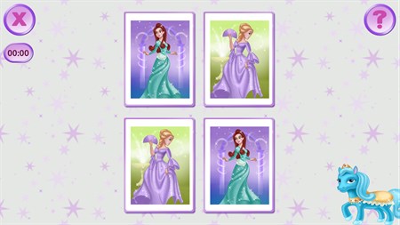 点按任何两张卡,它们将会翻转。如果这两张卡的图像相同,它们就会保持打开的状态。否则,它们将会再次盖上。你的任务是先任意打开并记住卡片图像,最终凭记忆打开所有成对的卡。