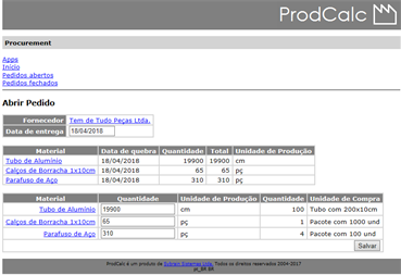 ProdCalc é um sistema web que permite o Planejamento e Controle da Produção Industrial com base nos consagrados conceitos de MRP/PCP.