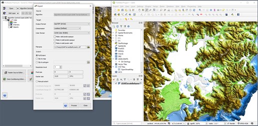 Using ProRaster Premium, you can quickly and easily create a rendering algorithm for rendering one or more raster datasets. As you build the algorithm, see it rendered in the preview map. Undock the map window so you can resize or maximise the view.