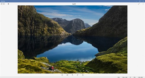 Just the right balance of functionality including opening, deletion, fitting image to window, actual pixels view, custom zoom, rotate, light/dark theme and fullscreen view.