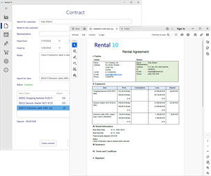 Equipment rental software Rental 10 easily manages rental businesses or manages internal rents to employees in companies. Rental 10 helps small and middle-sized rentals to manage store, customers, contracts. It gives you an overview of profitability, customers and theirs rents. It creates rental contracts, manages your store with rental prices, wear prices or prices in case of loss and theft.