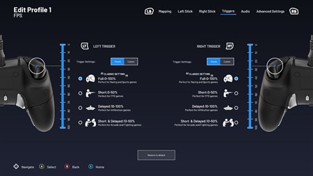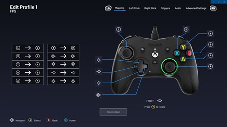 Unlock all the features of your Revolution X Pro Controller and level up faster on Xbox Series X|S, Xbox One and PC. You can access stick and trigger sensitivity, button mapping, shortcut button assignment, lighting effects, audio settings, and more. The Revolution X software interface offers a multitude of customisation options for performance tailored to you.