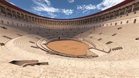 In this application, the Rome Reborn® team takes you back in time to the Flavian Amphitheater (“Colosseum”) and nearby monuments. Teleport from site to site to visit the arches of Constantine and Titus, the Colosseum, the Meta Sudans, the Temple of Venus and Rome, the Ludus Magnus, and the iconic Colossus of the Sun. Like all of Rome Reborn’s apps, this one offers expert commentary as well as reconstructions of the structures as they looked in antiquity. Time Warps allow you to toggle between the ancient and modern views of the monuments.