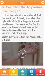 √ You do not need to spend time visiting a doctor. √ You do not need to spend a considerable amount of money. √ There is no danger of being hurt, infected or experiencing pain. √ You massage the points gently with your own finger. √ The app reminds you automatically of your massage appointments.