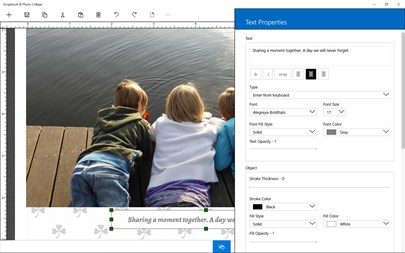 Scrapbook & Photo Collage is a WYSIWYG scrapbook designer and photo collage printing app. It allows you to easily layout your photos and add decorative embellishments for printing. An image can also be generated for sharing on your social media.