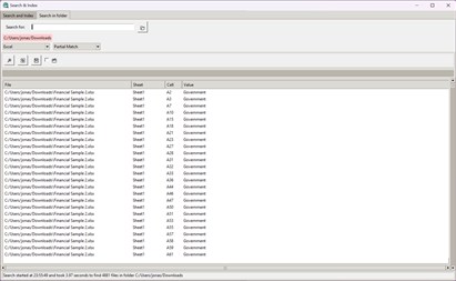 Search in Folder: This specialized page within the main program provides advanced search capabilities with options for exact, partial, or fuzzy matching. Results are displayed in an intuitive table view, and you can directly navigate to the exact cell or row with a double-click or open another view for a more detailed examination.