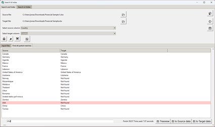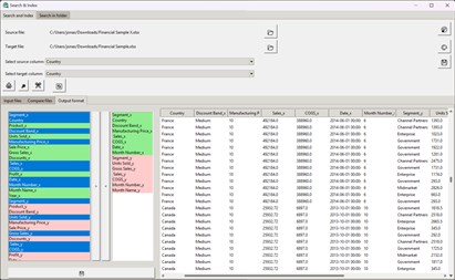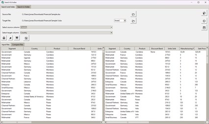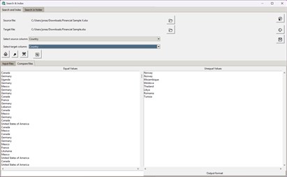 Search and Index (Main Program): As the central hub of the application, here you can choose among various specialized pages for specific data tasks. Select your source and target files or an entire folder. Configure the columns for comparison and let the software handle the rest.