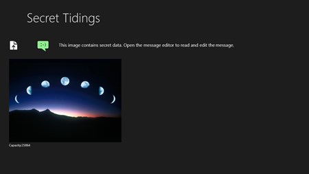 This application hides messages in plain images. The images can be shared by email, cloud services or social media. No one but the initiate will be able to read the message. Secret Tidings uses steganography also known as the art of hiding. Encrypted messages attract the attention of unauthorized attackers. Communication through unsuspicious carrier data adds another level of security to the conversation. Secret Tidings allows you to compose messages with text and attachments and hides those messages in images. The hidden messages are secured with a password. Attachments and text can be restored by the receiver.