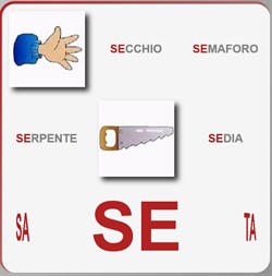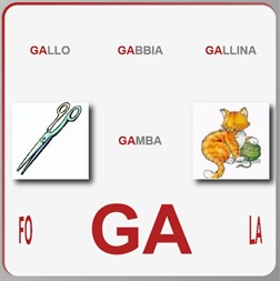 Gioco didattico che evidenzia le prime sillabe delle parole.