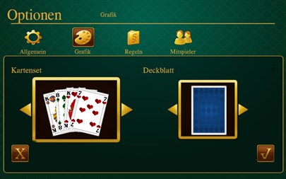 Whether beginner or professional player, in Skat Pro Deluxe you can find what you need for an exciting Skat challenge. Various difficulty levels via an AI update possibility and many kinds of settings for the gameplay give you the opportunity to make the cardgame customised. Now start a relaxing Skat match.
