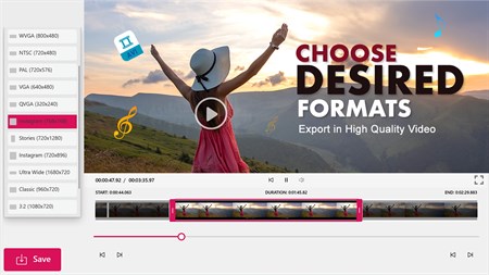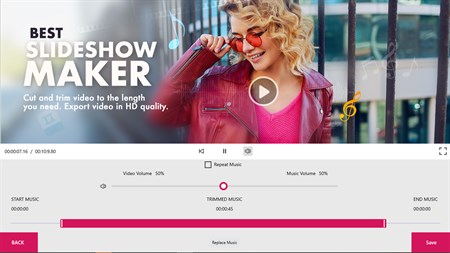 Here you can play with Transition Slide effect, add filters, set duration between the images, add default or manual audio, add sticker and apply extra effects like wave, rotating titles and more. Add blur effect and and highlight added text effect on your video.