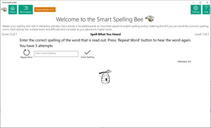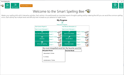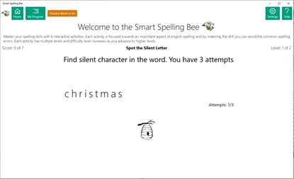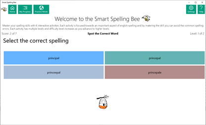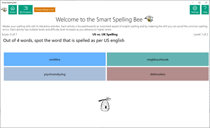Master your spelling skills with 6 interactive activities. Each activity is focused towards an important aspect of English spelling and by mastering the drill you can avoid the common spelling errors. Each activity has multiple levels and difficulty level increases as you advance to higher levels. Game 1: Top 200 Misspelled Words Game 2: Spot the wrong spelling Game 3: Fix the Spelling in the Word Game 4: Spell what you heard Game 5: US vs. UK Spelling Game 6: Find the Silent Letter