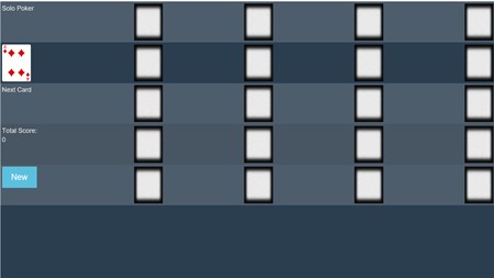 Poker Solitaire is played on a five by five board. The deck of cards is shuffled, and you draw one card from the deck at a time and place it anywhere on the board. Your goal is to make each column, row, and diagonal row form the best possible poker hand. Special thanks to Michael Moncur author of Teach Yourself JavaScript in 24 Hours from whose book I learned how to make a game like this.