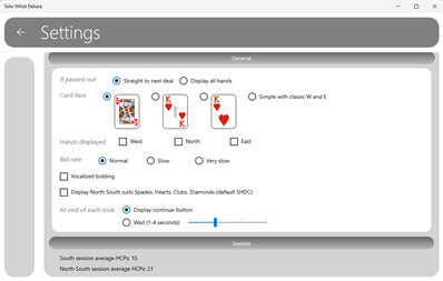 Solo Whist Deluxe allows one player to play a complete game of random deal Solo Whist against three computer controlled opponents. At the end of play all four hands are displayed followed by the score. Features random hand generation, session data, claim tricks, rebid/replay, high card point deals and print hand options.