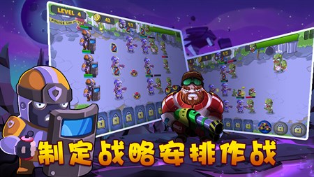 游戏玩法: ▸ 部署士兵的防线,击败入侵的僵尸军队,并收集金币。 ▸ 强化和升级士兵,采用不同的策略,使用各种类型的武器以抵抗不同的僵尸。 ▸ 击败各种boss,解锁更高级的武器和技术。