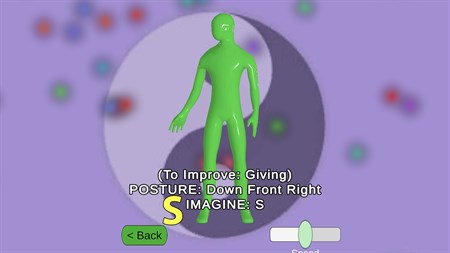 A healthy exercise and awareness routine. Imagine letters, numbers, and shapes around your body and point to them. The symbols are a spiritual message.