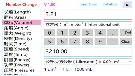 The software can complete coordinate conversion, numerical conversion, scientific computation and so on . It is practical, high precision, Knowledge Computing tool. Can be carried out coordinate conversion, numerical conversion, unit conversion, numerical calculation, expression, and there are complex variables, such as the calculation of the formula. Will gradually increase the coordinate cross zone conversion, the two sets of coordinates conversion, area and direction, GPS settings, and so on . Coordinate transformation can be carried out in Beijing 54, Xi'an 80, China 2000, WGS84, UTM and other coordinate system conversion; can be easily carried out to the latitude,longitude and km network. Numerical conversion can be carried out in the length, area, volume, gravity, density, angle, date, energy, and so on several hundred kinds of unit conversion. The formula can be used in some digital and conventional symbols, Chinese characters function, trigonometric functions, variables, formula formula symbols. Using fuzzy intelligent technology, automatic judgment of the meaning of the statement, fuzzy conversion of all kinds of symbols, to complete the high accuracy of intelligent computing. Available keyboard input, or touch screen with the mouse and click on the button, enter the number and symbols, intelligent output high precision computing results.