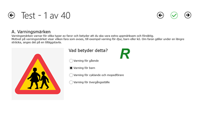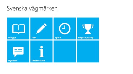 Plugga: Välj vilken kategori du vill plugga på och stega dig igenom alla vägmärken. Här kan du kan också se all vägmärken inom kategorin.