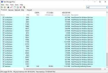 Task Manager Plus is a Windows task (process) manager with many advanced features. You can search a process, check if there are any programs opening your file, detect which program is accessing network and many more. With Task Manager Plus, you can easily detect which process is using much CPU, GPU, network, disk; and which process may be a malware (virus).