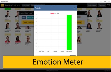 19) Emotion - Meter Use this to gauge individual student's emotional response to your lesson, to a assignment or to anything! Students can "submit" their range of emotions (Very sad - OK - Very Happy) from the student App. This is a good way to quickly sieve out students who are having problems with assignments or understanding your lessons but are too shy to come forward to ask for help. Swipe the student app to the left one more time to reveal the emotion-meter mode. Keep tapping on either "Happy" or "Sad" to match your emotion.