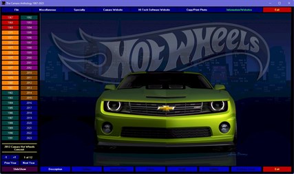 The Camaro Anthology is the only GM officially licensed multimedia encyclopedia about the Chevrolet Camaro. This photographic safari through the world of the Camaro contains over 1300 high resolution photos (1200 x 730), dozens of graphics and more to guide your tour, starting with their introduction 1967, to the final 2002 35th Anniversary SS super cars, the 2006 and 2007 Camaro Concept vehicles and then on to the incredible new 2023 Camaro SSs, Z28s and ZL1s. Browse the statistics, the options, those tremendous horsepower muscle cars of the sixties. It’s all here! Everything you want to know about every year. A must have for any Camaro owner or enthusiast!