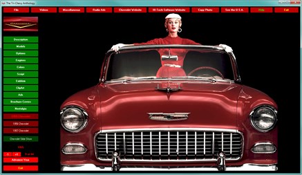 Another GM officially licensed DVD-ROM encyclopedia from HI-Tech Software. This photographic safari through the world of the Tri-Chevys contains nearly 300 hundred photos, hundreds of graphics, videos, TV Commercials, radio spots, over 150 Chevrolet magazine ads featuring the Tri-Chevy's and much, much more to guide your tour. Browse the statistics, the options, the colors and the models from the favorite Chevy years. It’s all here! Everything you want to know about each year. A must have for any classic Chevy owner or enthusiast!