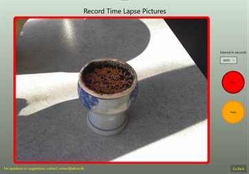 Time Lapse Live is an application, let you create time lapse videos in a very easy way. First select the time interval bestween recording of the pictures. Then select the camera that will be used to record the pictures.