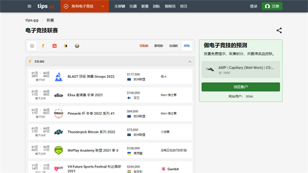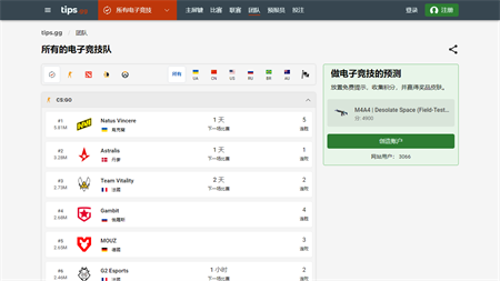 Tips.gg是关于电子竞技独特的项目。你可以做免费比赛的预测,得分并把它交换为有价值的奖品。跟tips.gg分析电子竞技:比赛时间表,结果,锦标赛,队一整个电子竞技在一个网站。