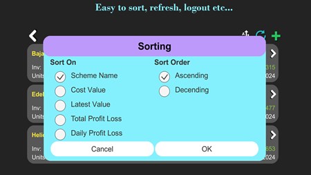 Automatic Updates: Never miss out on new mutual fund schemes hitting the Indian market. The app adds them automatically for your convenience. Daily latest NAV (Net Asset Value) will be updated automatically for all your invested mutual funds schemes.