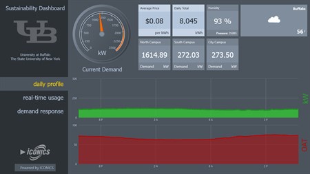 Designed for Students and Researchers engaged in Sustainability efforts at the University at Buffalo, UB Energy is an energy dashboard meant for viewing consumption metrics as well as allowing researchers to view real-time energy demand and key performance indicators for energy use across the three campuses of the University of Buffalo. As part of a growing movement and appreciation for energy use, the University at Buffalo and ICONICS have worked together to deliver this energy dashboard. With a subset of buildings currently monitored the campus will expand coverage in the future.