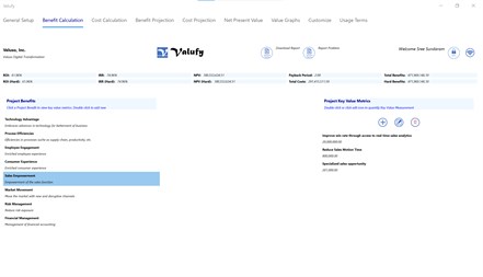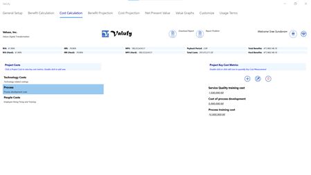 Valufy is a free value model generator for those with little or no experience in creating business value models. It enables you to create quantifiable value propositions for most projects and initiatives. Thinking about Digital Transformation but don't know where to begin? Use the hundreds of pre-built key benefit and cost metrics to quickly develop your business case. It enables the democratization of value creation to users with all levels of business analysis knowledge. The basic user can use the tool "as is" but the advanced user can create their own value/cost metrics and associated equations.