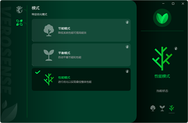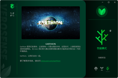 VeroSense 是 Acer 的内置软件,旨在帮助注重省电的用户实现更进一步的目标。 本应用程序为用户提供了三种性能模式以供选择:性能、平衡和节能。VeroSense 不仅环保而且使用方便,它提供了易用的用户界面和有用的信息,显示您正在为地球作出贡献。