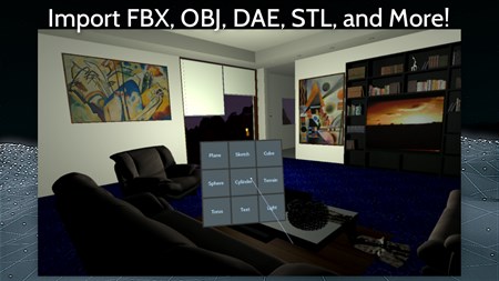 VertoStudio VR is a fully-capable mixed reality 3D modeling studio and generalized augmented reality tool! No mirroring or external software is required of any kind. You can use it to import FBX, OBJ, DAE (and more) files directly, then configure every aspect of the visual display of these models as either holograms on the hololens, or VR environments on windows MR headsets. Verto Studio VR gives you full editing control, directly down to the individual polygons.