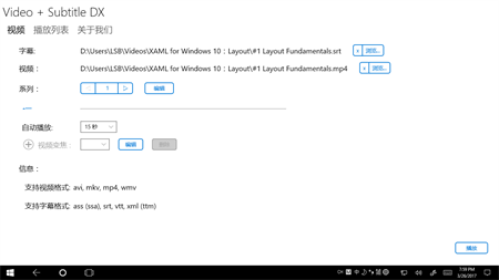 这款软件是一个非常简便的外挂字幕影片播放器。 使用者可以从其他来源选择字幕档来观看的影片或从事其他目的。 这版本采用了先进DirectX技术来显示字幕,使得字幕获得多样性的色彩与样式并有较好的显示效能。 目前支持"mp4、wmv、avi、mkv (win10)"的影片格式和"ass、ssa、srt、vtt、xml (ttml)"的字幕格式