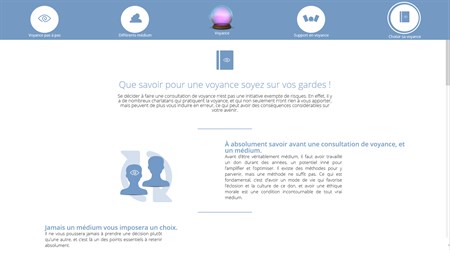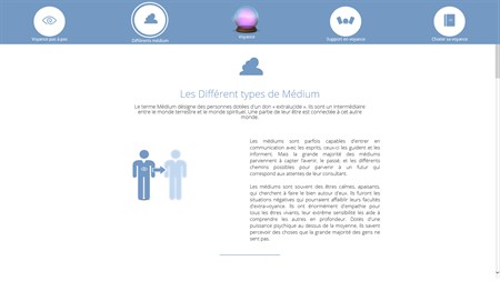 Téléchargez dès maintenant l’application Voyance. La voyance est un art qui ouvre les portes du Destin et laisse entrevoir l'avenir et ses différents chemins. Cet art est est une réalité troublante mais bien réelle qui aide à comprendre les événements qui vont être décisifs pour vous (un nouvel amoureux à l'horizon ? Un nouveau job ? Un déménagement ? …) C'est ici que nous vous dévoilons à présent les clés de votre avenir, tout ce que vous devez savoir pour réussir votre consultation Voyance à travers nos 4 sections La section Introduction à la voyance vous donne les premières informations nécessaires pour réussir votre consultation voyance. C'est dans la section Les différents médiums que l'on vous explique les dons « extralucides » des voyants et comment ils sont intermédiaires entre le monde terrestre et le monde spirituel. A travers la section différents moyens utilisés vous découvrirez quels moyens ces médiums utilisent pour mieux vous percevoir en voyance. Enfin dans la section Soyez sur vos gardes, on vous dit tout ce que vous devez absolument savoir avant de consulter. Etre sur vos gardes, à tout moment, pour rester maître de son destin.