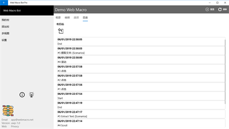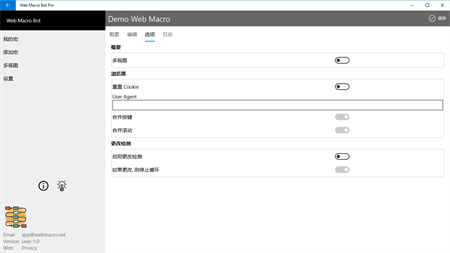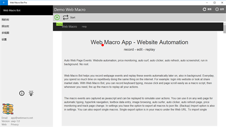 Web Macro Bot可帮助您记录网页事件,并在以后自动重播这些事件。每天你花了很多时间在互联网上重复做同样的事情。例如:登录网站或查看股票市场统计数据。使用Web Macro Bot,您可以轻松地将键盘输入,鼠标单击和页面滚动记录为宏脚本,然后在需要时,启动宏以重放所有操作。