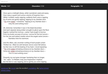 wordcount is a simple word count tool that does not contains ads, in-app purchases or any other rubbish. it simply counts words