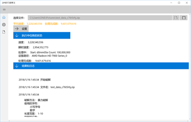【ZIP密码破解王】是一款快速破解ZIP文件密码的APP。 可以使用CPU、集成显卡、独立显卡一起计算以加快速度,使得破解速度提高到只使用CPU的数十至数百倍。 (一个intel i7 CPU核心每秒钟可以验证大概800-1500万个密码,而使用最新的独立显卡可以轻松达到数十亿以上) 在实际的测试中,使用Radeon HD7990达到了30亿/秒的速度。
