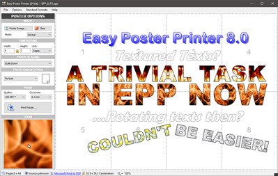 Easy Poster Printer is an easy to use application for creating posters (in any size up to 20 x 20 meters) using a regular printer.