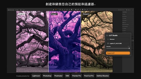 • 為 Adobe Lightroom、Photoshop、Premier Pro、DaVinci Resolve、Final Cut Pro、Pixelmator 和 OBS 創建和銷售預設/LUT。