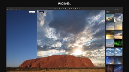 • 天空替換(SkyXpress) - 替換天空並輸入天氣。使用 AI Edge Detect 導入自定義天空並與您的圖像合併、融合、集成以獲得自然的外觀。