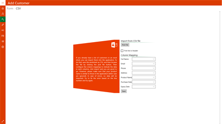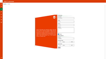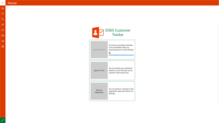 O365 Customer Tracker is a mini-crm tool allowing you to track all your Office 365 customers. Through this app you will be able to store details of your customers subscribing to O365 or other products, and have reminders sent to them by simply clicking on a button. You can set up your own customised email or use the pre-defined template.